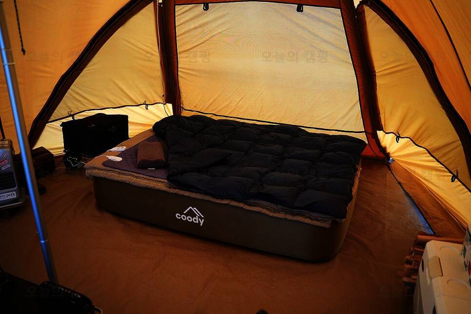 [솜 80%], 프리미엄 OEKO-TEX 면 100% 침구 카라반내 온수 난방, 냉온풍기 설치 ✔️ 카라반: 온수 난방... #김포한강오토캠핑장 #겨울 캠핑 #카라반 #가족 캠핑 #실내 식당 #김포캠핑 #김포아이랑 #김포캠핑장추천