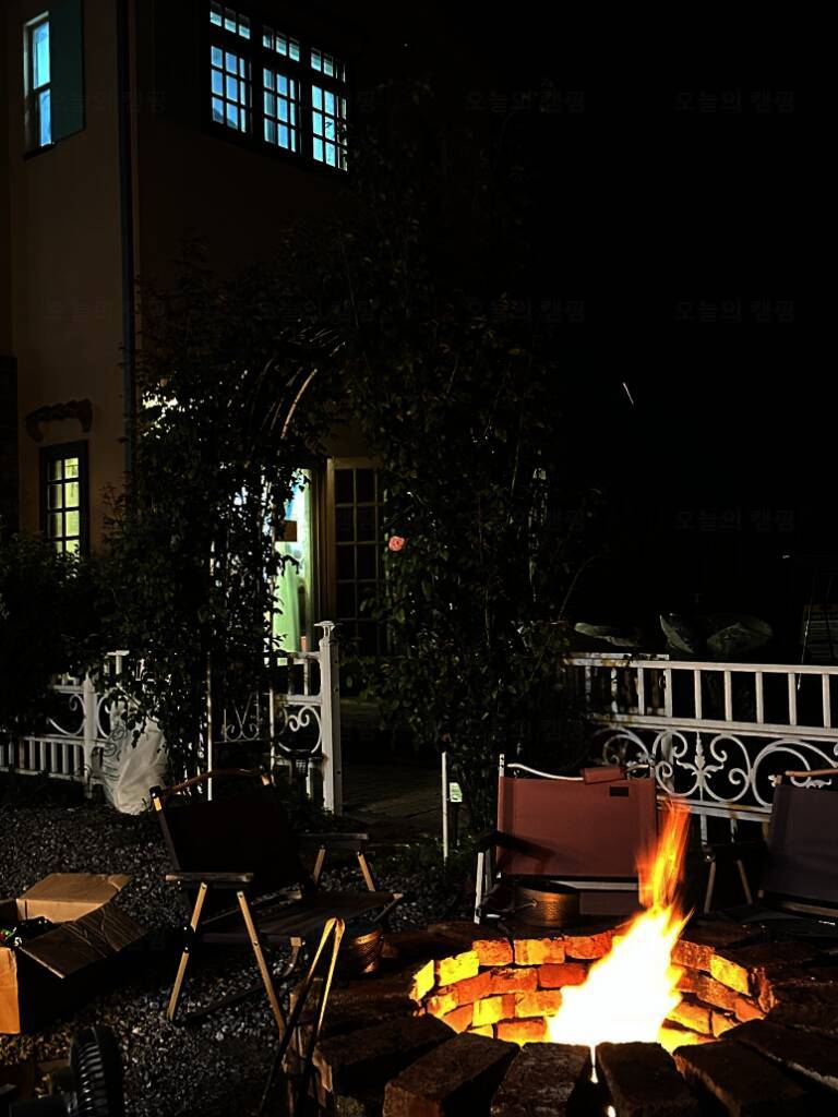 쁘띠프로방스펜션 ✔️ : 입실 : 3시 , 퇴실 : 11시 ✔️ : 수영장이 있는 독채 펜션 4월 마지막째주... 캠핑의자를 여러개 구비해두었더라구요~? 불멍하기도 좋았어요 그리고 저희는 요 공간에서 고기구워서 먹고...