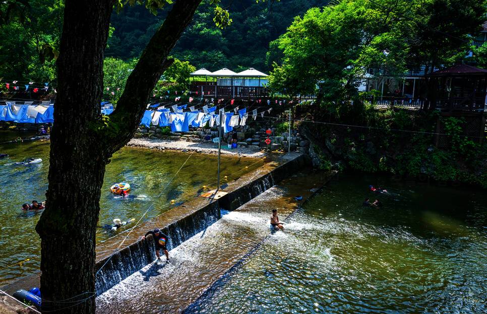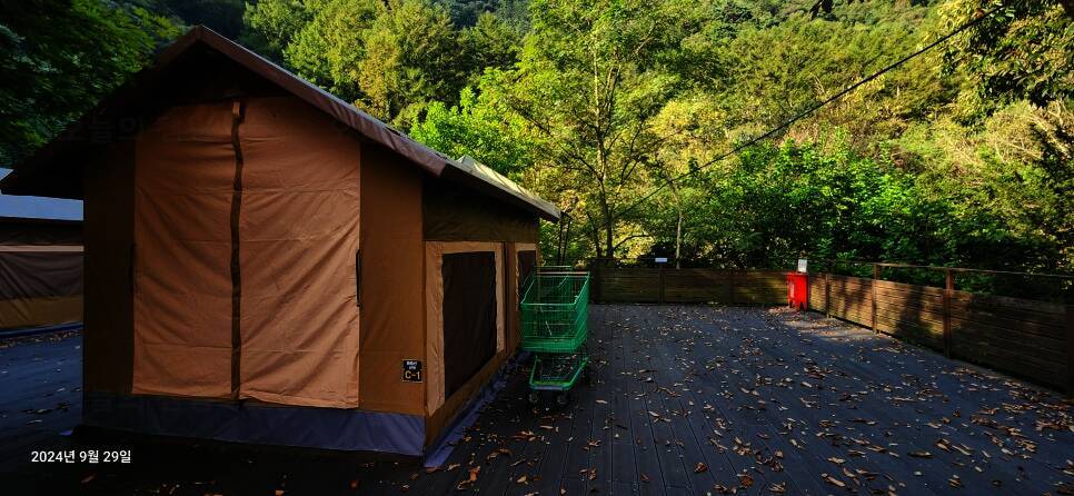 단양 남천계곡물가 캠핑장 테라스컨테이너와 평상캠핑...