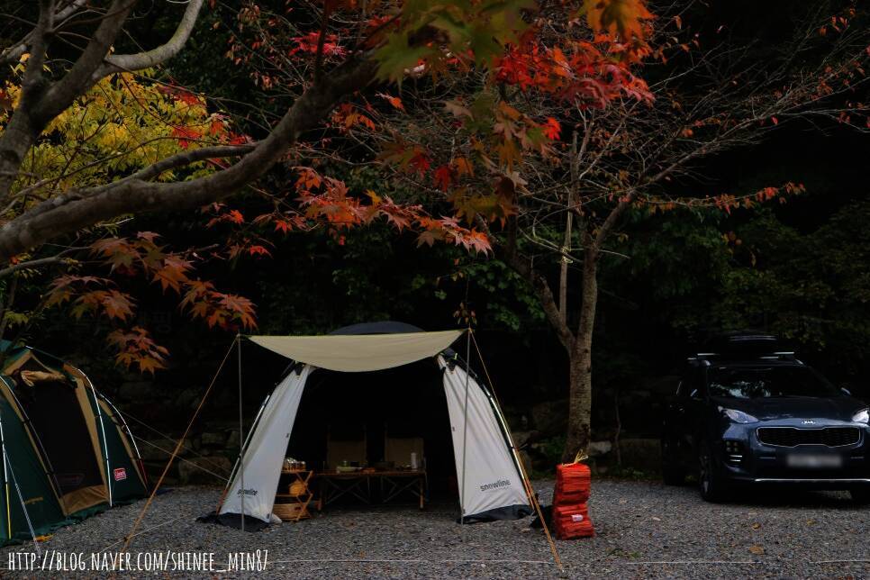 다 식어빠지게 또 사진 찍어대기.....ㅋㅋㅋㅋ 저녁에 차들이 많이 앞에 주차해서 뷰가 망했어요ㅋㅋㅋ 단풍이 예쁘게 드는 가을단풍캠핑 한동안 못가게되서 슬프네용 ㅠㅠ 경주 산내면 월계수 캠핑장...