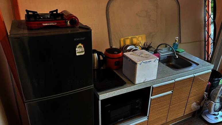 예전부터 가보고싶었던 곳 주노글램핑 상무지구에 위치해있어서 음주후에 대리운전을 부르기도 편해... 테이블과 캠핑의자 4개가 놓여있다 깔끔한 주방 가스버너, 커피포트, 전자레인지, 밥솥이 있고 간단한...