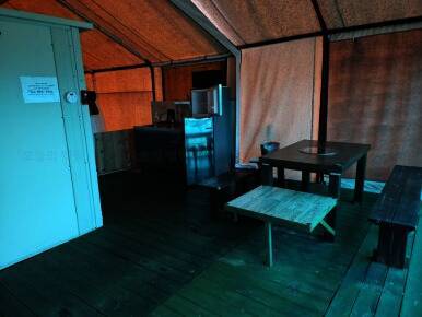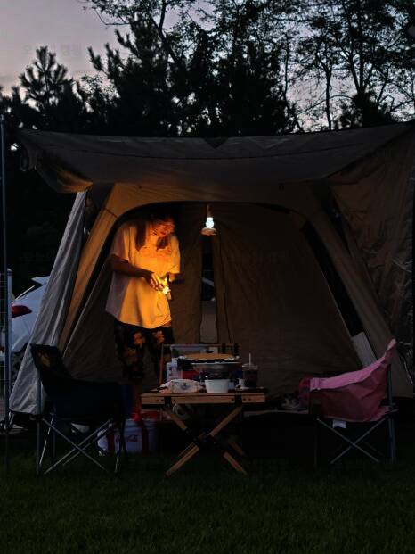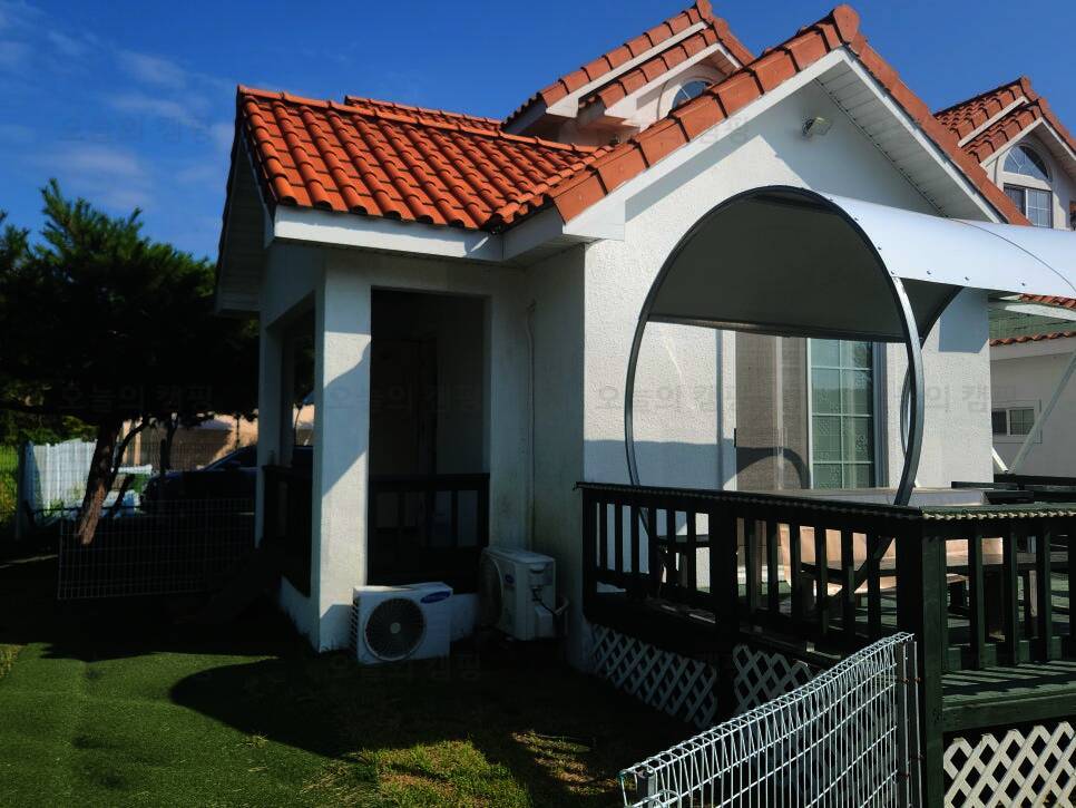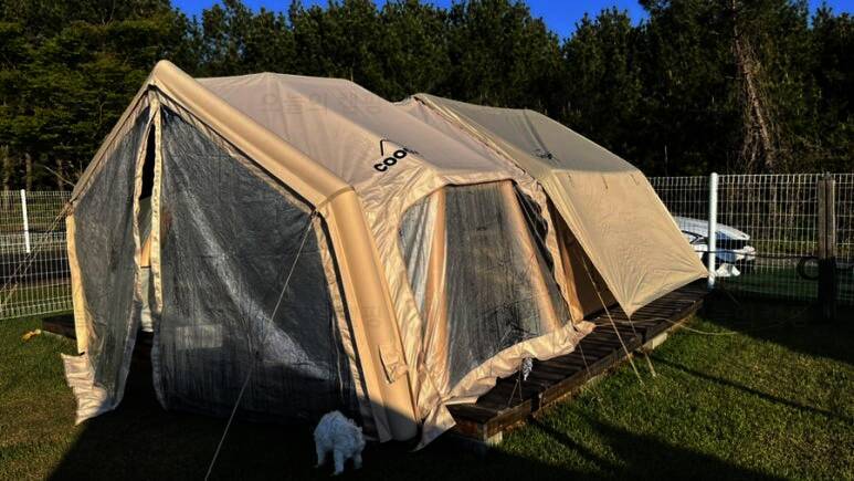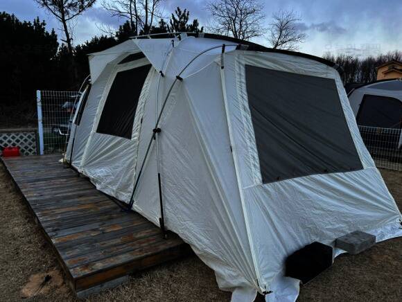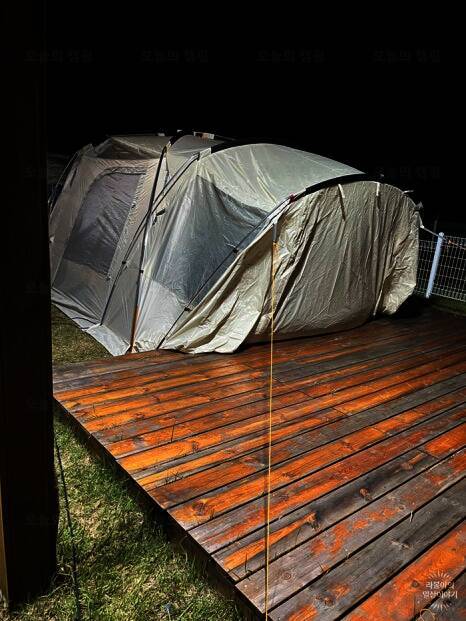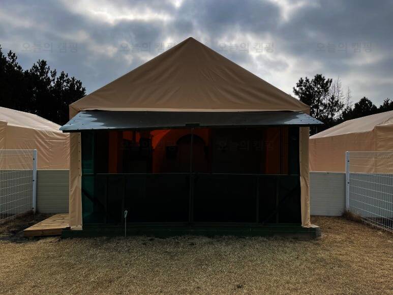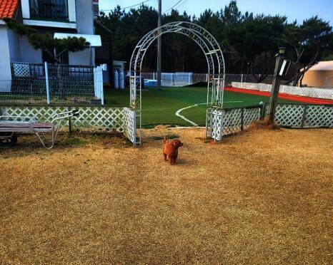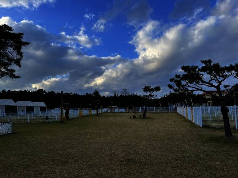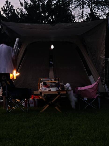 드넓은 잔디밭에 펼쳐진 반려견 전용 글램핑