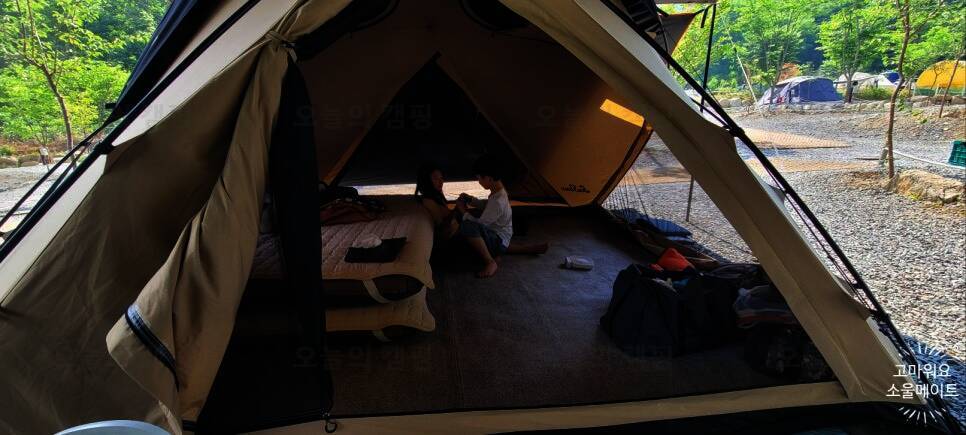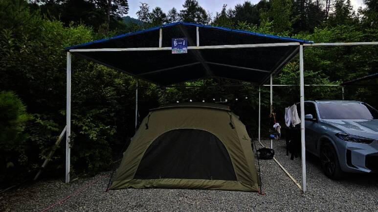 여름이니 계곡 물놀이도 함께 즐길 수 있으면서 파주에서 너무 멀지 않은 곳 바로 시즌온관광농원캠핑... 물고기도 사는듯? 물놀이 한 후에는 뭐다? 라면 먹어야지 라면 끓여 먹고 본격 텐트 치기 시작! 두번째...