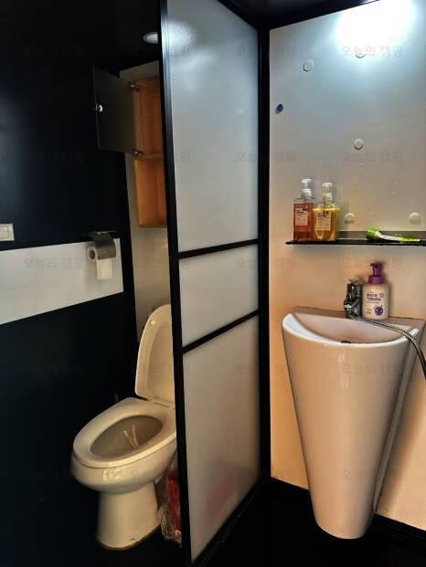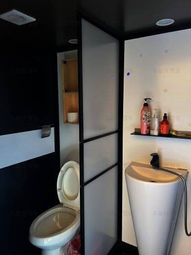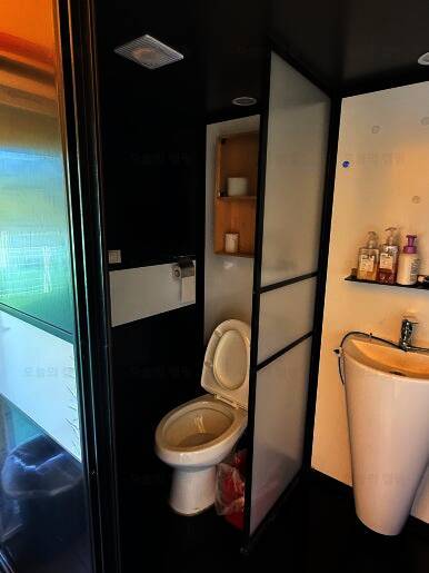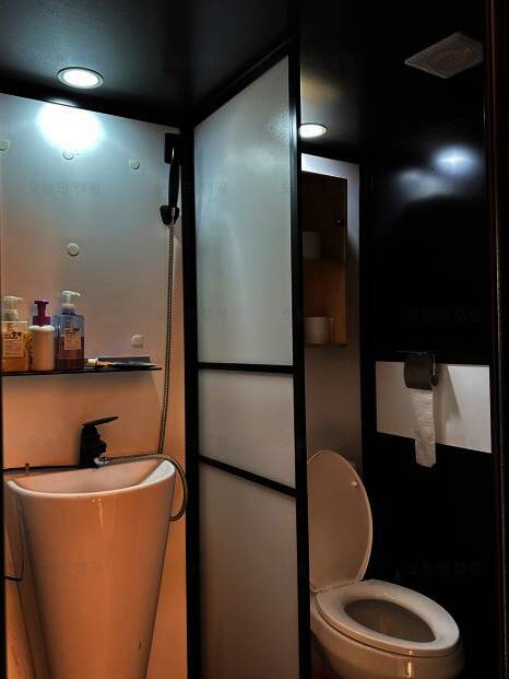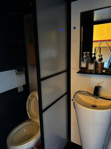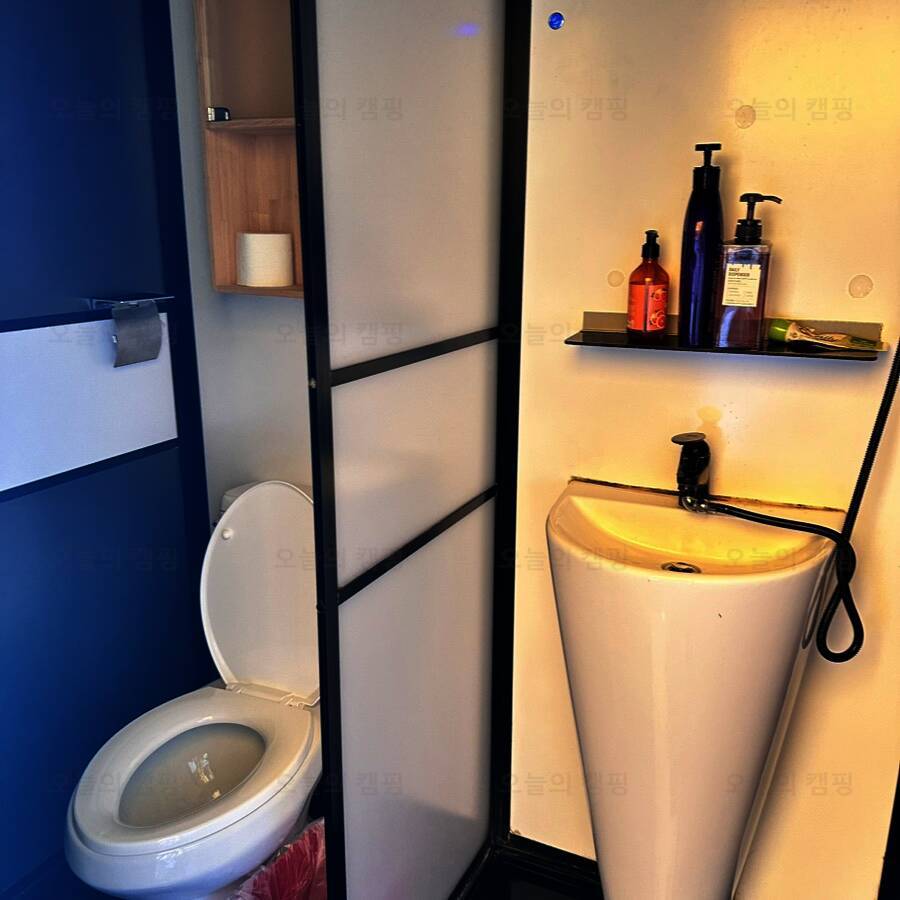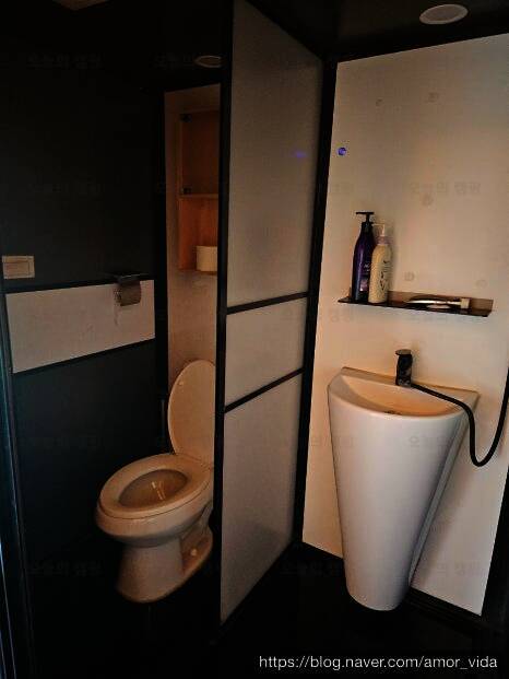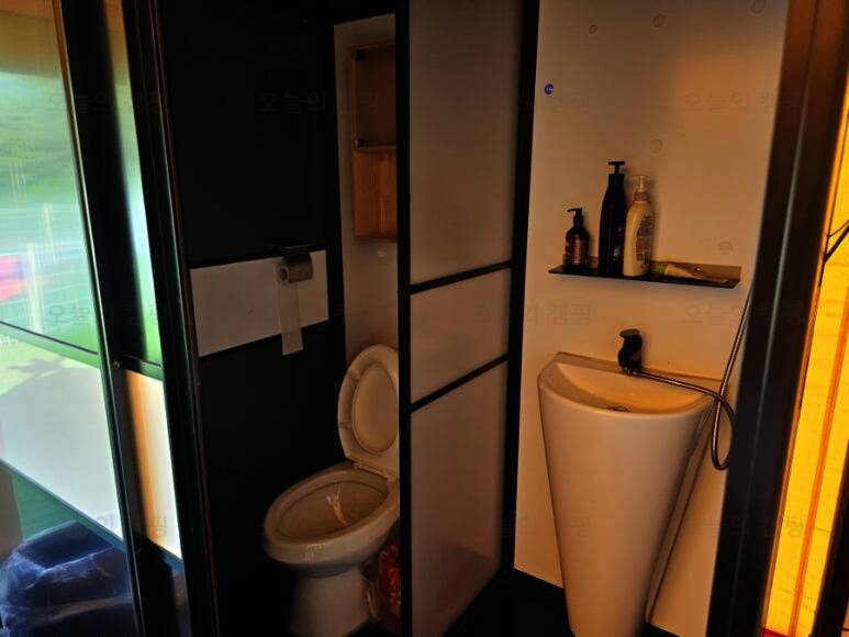 보통 캠핑장, 글램핑장에서 공용 화장실을 써야 하는 경우가 있는데, 청도신난다애견글램핑장은 개별로 되어 있고 따뜻한 물도 잘 나와서 좋았다. 다만 이날만 그랬던 건지는 모르겠으나 배수가 잘되지 않은...
