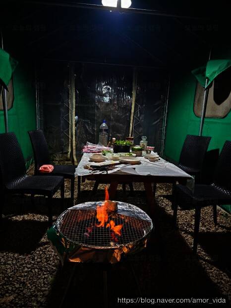 청도 신난다 애견 글램핑 대구 근교에 위치하고 가성비 좋기로 유명한 곳이다 네이버로 어렵지 않게... 정말 캠핑 박람회에서 잘산템 인 듯 그나저나 무더운 여름밤에 바비큐는 너무 힘들었다 땀 뻘뻘 흘리면서...