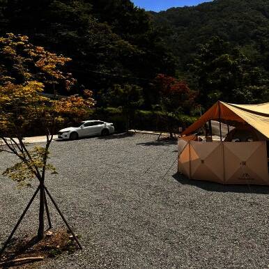 겸 캠핑을 가기로 했다 바로 앞에 계곡도 있었으면 좋겠고, 사람이 많이 없어 조용한 곳을 찾다 보니... 도착한 캠핑장..! 바로 옆 사이트를 아무도 예약하지 않아 차도 주차해놓고 넓게 쓸 수 있었다 이번에 새로...
