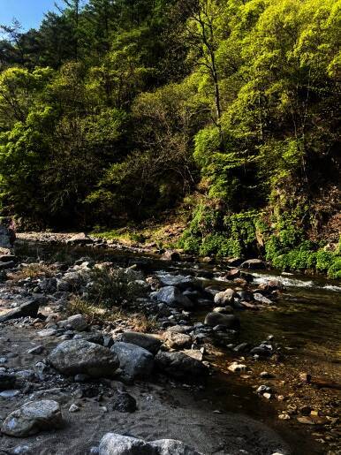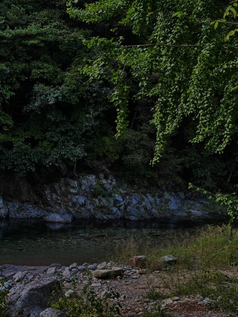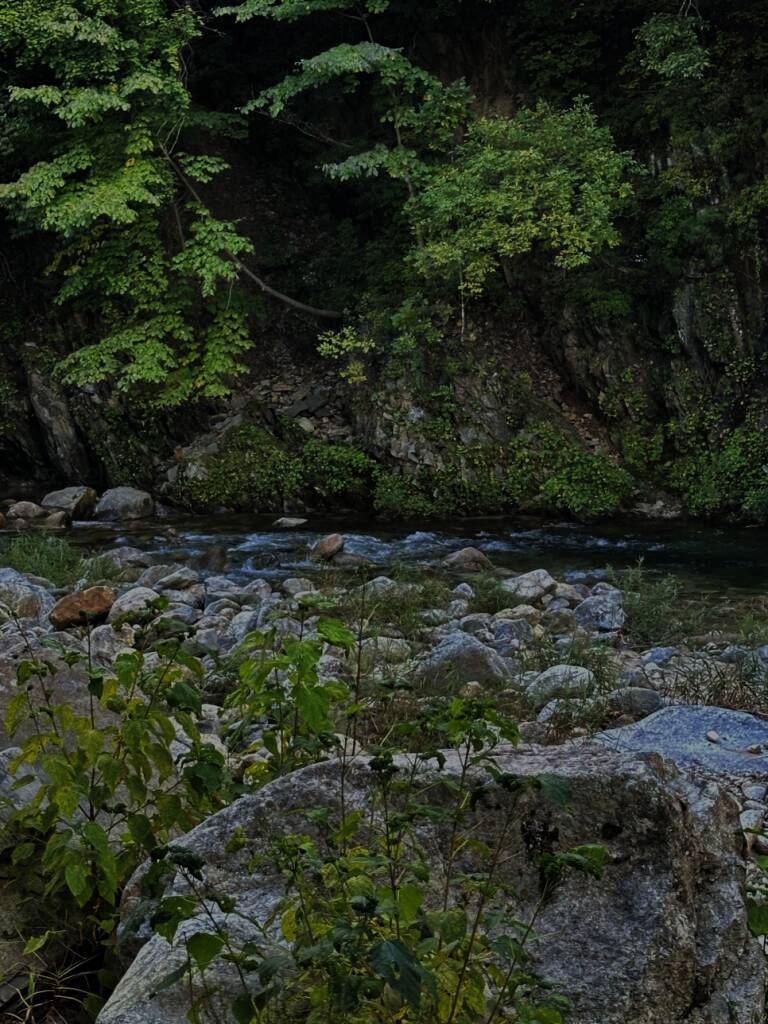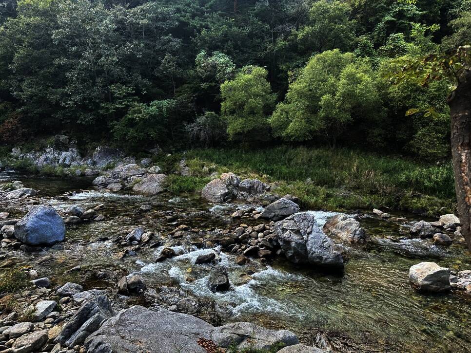 고기는 캠핑 테이블에서 구워서 평상으로 옮겼다. 장어도 식당에서 포장해와서, 삼겹살과 함께 구워줬다. 김치도 구워주고 지글지글ㅎㅎㅎ 히어리 캠핑장 펜션 계곡 캠핑장 뒤편으로 내려가면 계곡이 나온다....