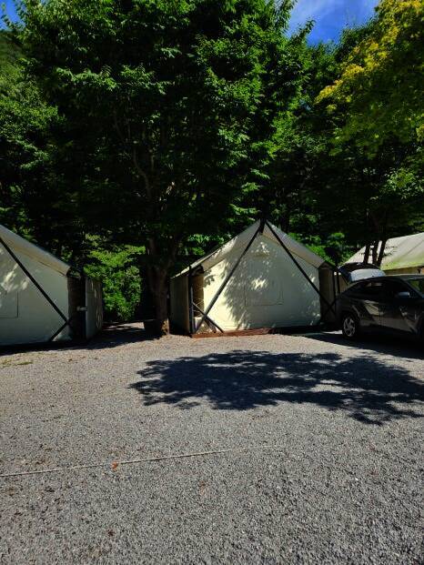 특히, 영월 히어리캠핑장 에는 저희같이 캠핑을 안해본 사람들을 위한 글램핑도 준비가 되어 있었어요. 안에 구경을 하지는 못했지만, 나중에 사진 찾아보니 잘 되어 있어서 따로 준비물 크게 없이 1박 해볼 수...