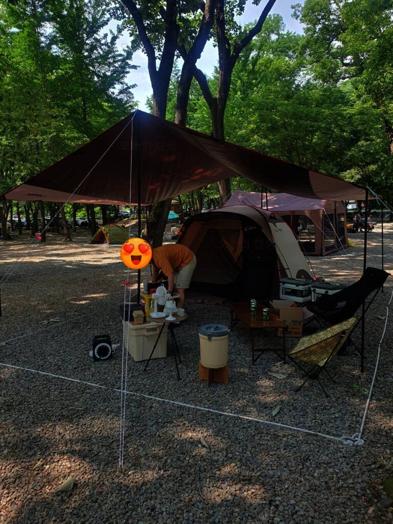 하필 다 같이 청주 금관숲캠핑장에서 캠핑하기로 한 날 전날부터 비가 어찌나 많이 오던지.. 걱정이 이만저만이 아니었는데 캠핑 고수가 있어서 타프를 챙겨와서 이미 설치 끝 금관숲캠핑장 충북 청주시 상당구...