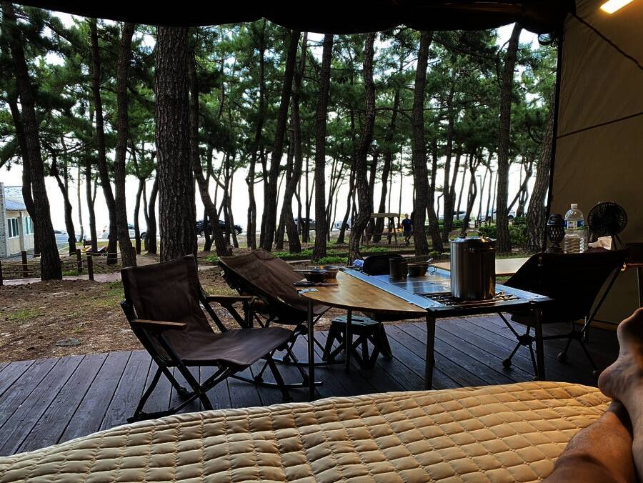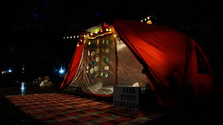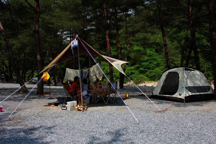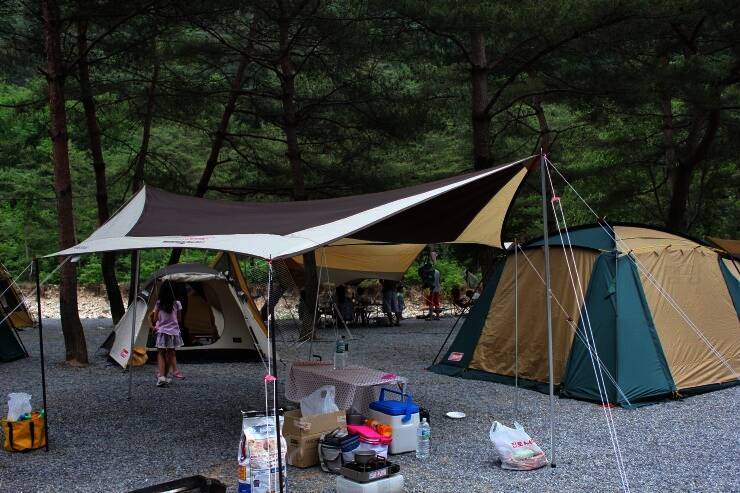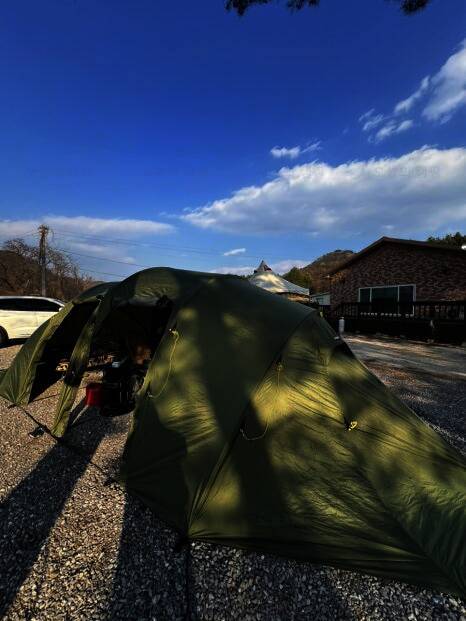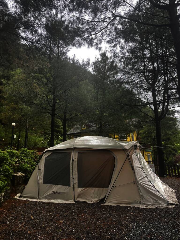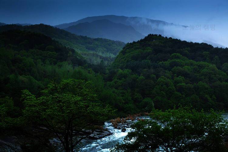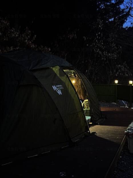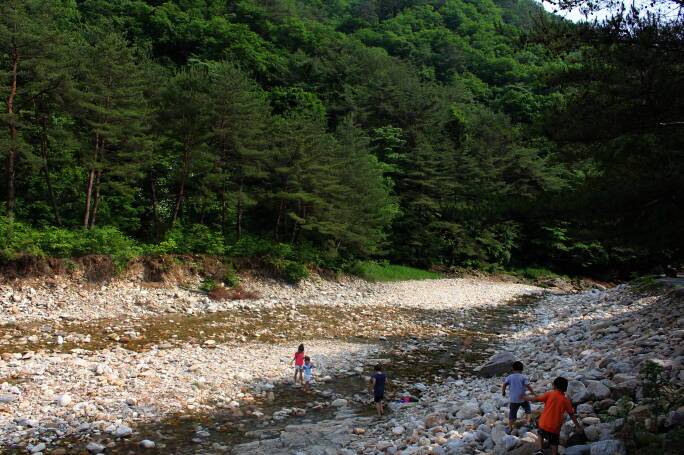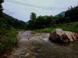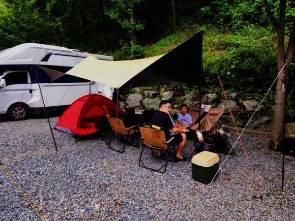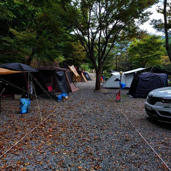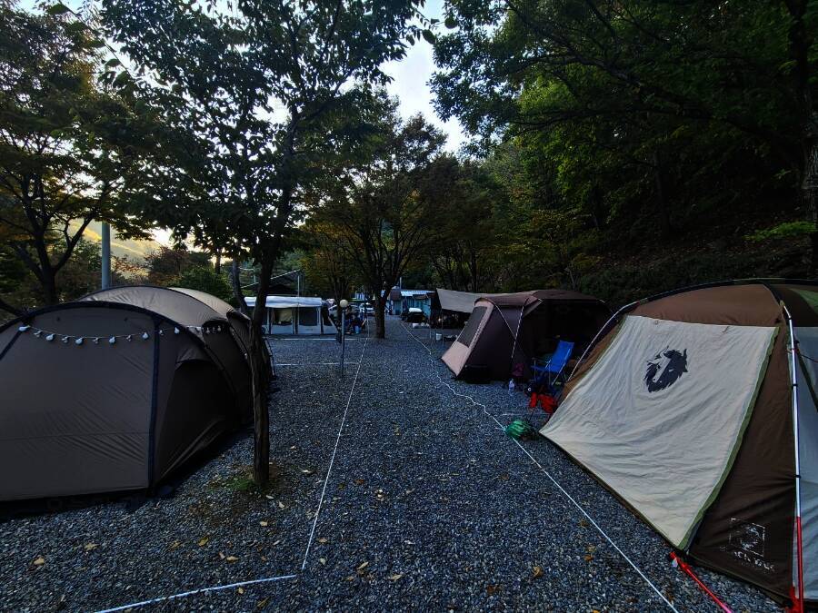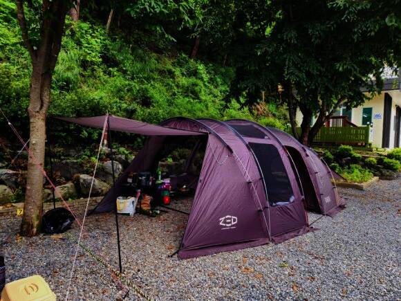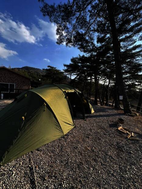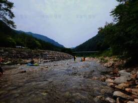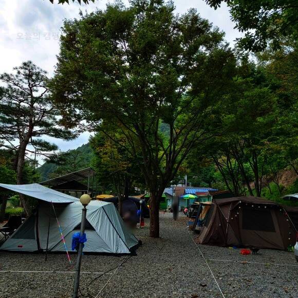 법흥계곡 중간에 있는 펜션과 함께하는 야영장