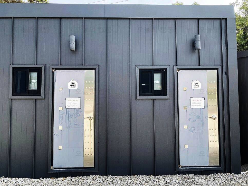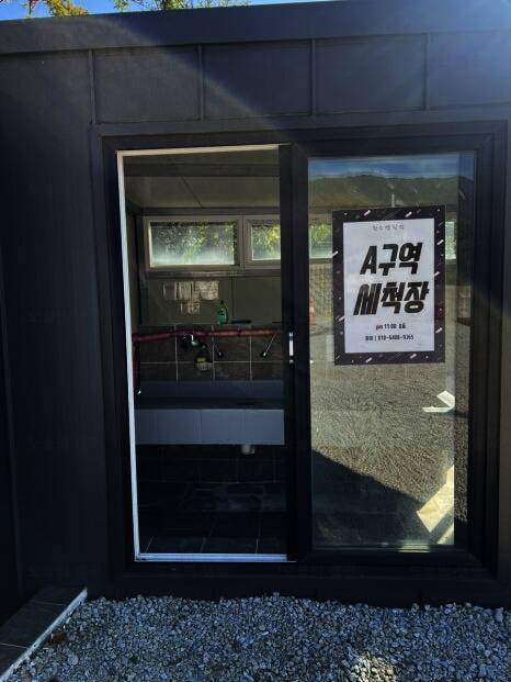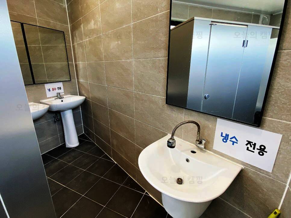 (캠핑고수 왈) 원스캠핑장 시설 안내 ⭐️화장실이 엄청 넓고 깨끗했어요 따뜻한 물 콸콸콸 온수도 잘 나오고 휴지도 완비! ⭐️샤워실에는 공용샤워기가 4개정도 있었고 드라이기도 구비되어있어욥...