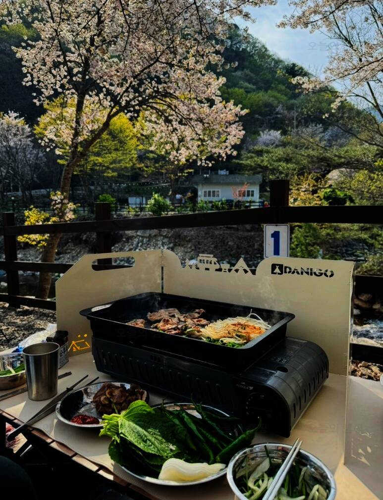 해서 벚꽃 캠핑으로 유명한 곳을 다 찾아봤는데 뭐,, 당연히,, 주말은 자리가 전혀 없었고 평일에 있는 곳을 찾다가 양산에 있는 청수가든 캠핑장을 찾았어요! 양산시 원동면 영포리 713-1 입실 - 14:00 퇴실...
