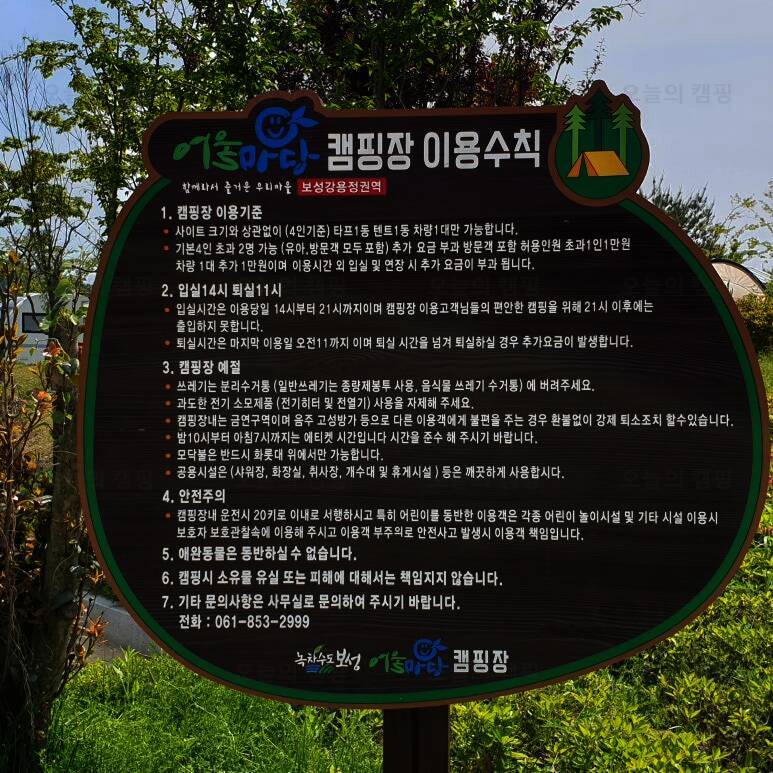 미력면 보성강로 356-30 사무실 : 061-853-2999 휴대폰 : ***-****-**** 오토캠핑장 10사이트 : 5만원 차량을 바로... 있는 어울마당입니다. 다만 고속도로가 가까이 있어 차량 소리에 민감하신 분들은 참고하시고요 잠귀...