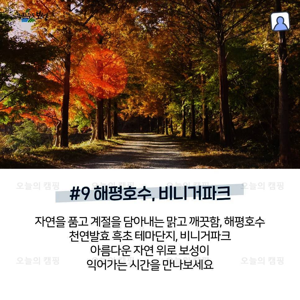 #8 보성강 용정권역 어울마당 야영장 조심스레 어디론가 떠나고 싶은 여러분들을 위해 보성이 선사하는 캠핑여행! 강바람 살랑이는 보성강 용정권역 어울마당 야영장으로 놀러오세요. #9 해평호수, 비니거파크...