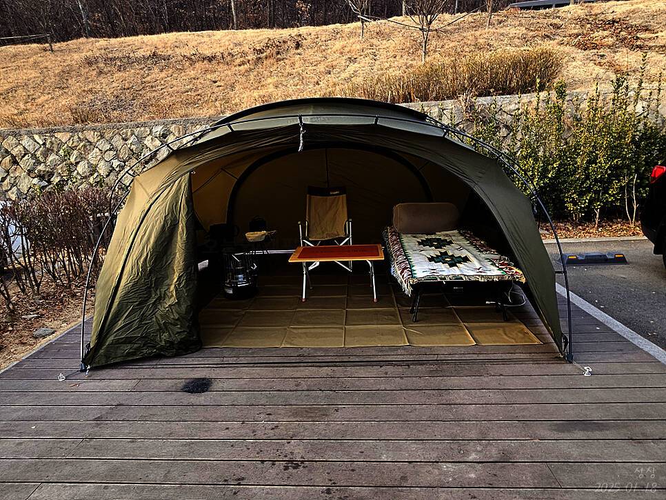 백숙집(가든)들 사이로 떡하니 있는 캠핑 고깃집 예전에 생겼다라는 거만 알고 있었는데 방문을 처음했거든요 분위기 좋아서 ㅋㅋㅋㅋ 술 취한와중에 사진찍음 우리동네 캠핑장은 운영방식이 특이해요 바로옆에...