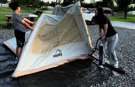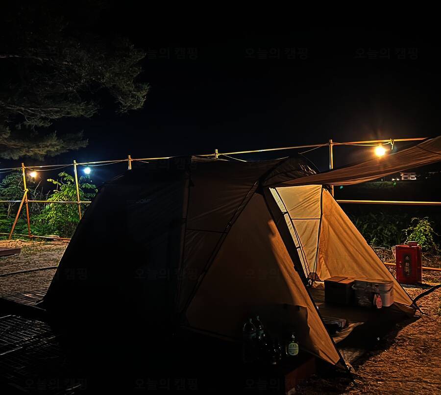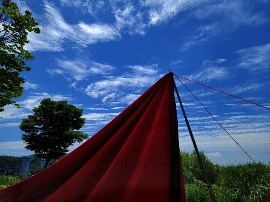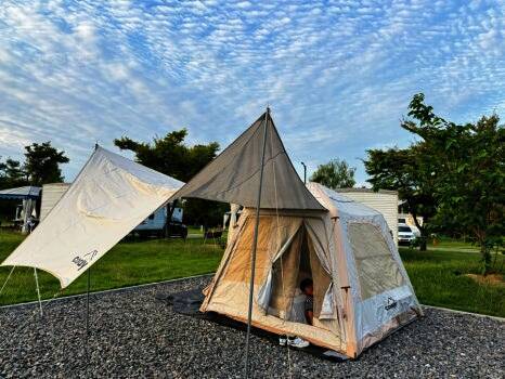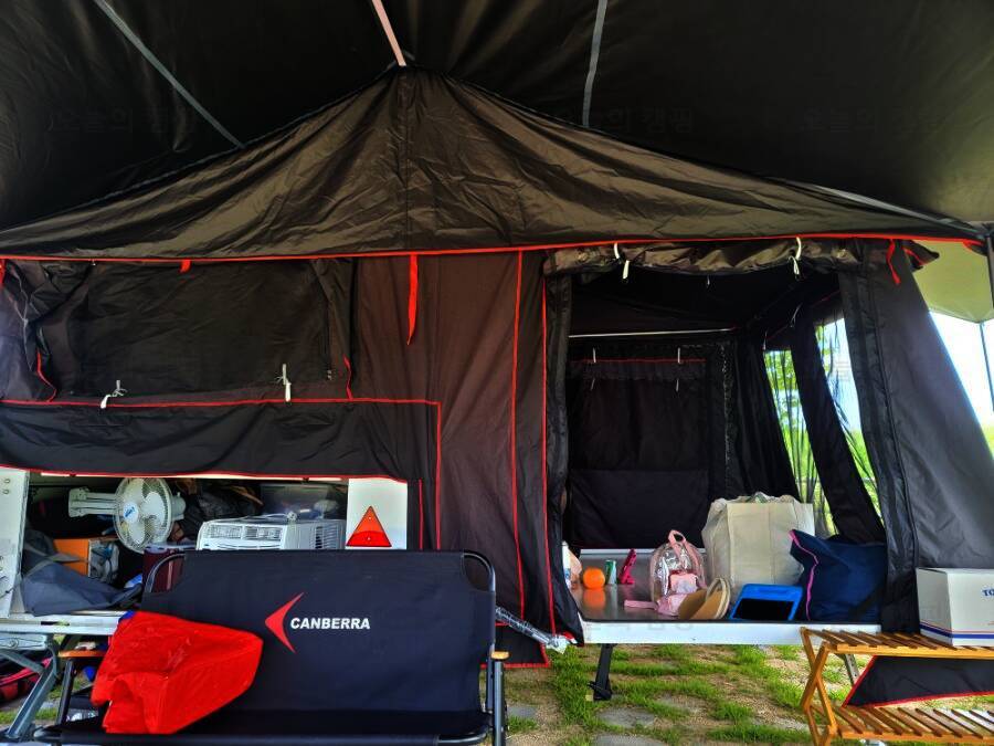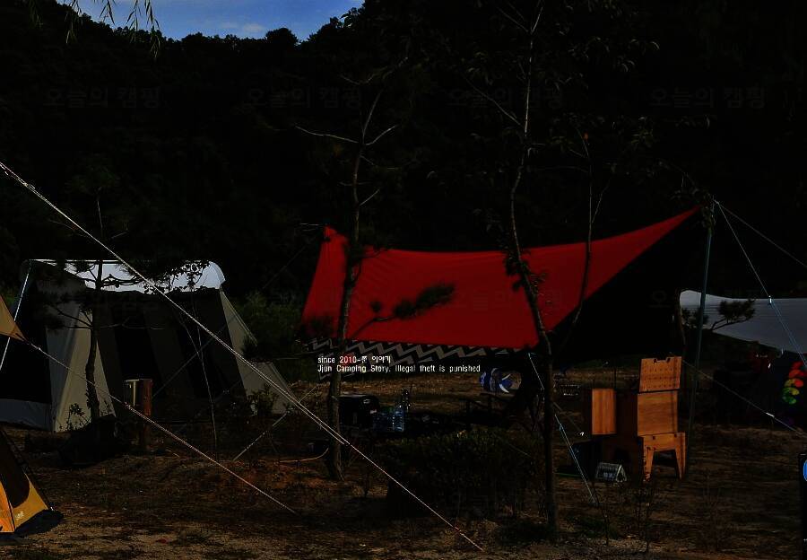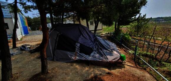 혼자 유투브에서 공부해서 오더니 이렇게 큰 타프도 척척 설치하는 쭌. 원래는 중간에 처지는 부분에도... 곳은 개수대와 화장실이 없어 불편 할 수도 있지만 카라반이나 캠핑카에게는 좋은 캠핑장소가 될 것 같다.