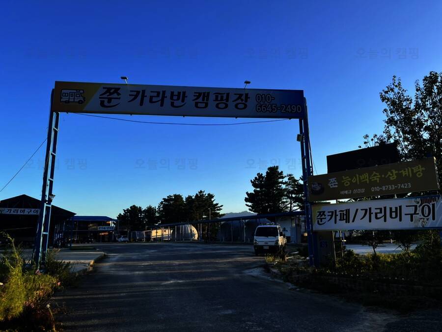 그나마 진짜 제대로 텐트를 치는 캠핑이 아니라 카라반에서 자는 날이라 다행이었죠. 쭌 카라반 캠핑장에 들어섰는데 보이는 것은 바다 양푼이 동태탕 식당. 오잉. 이게 뭐지 하고 놀랐는데 알고 보니 건물...