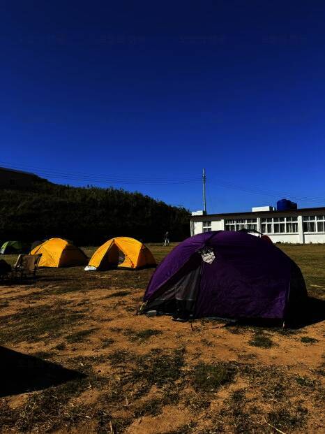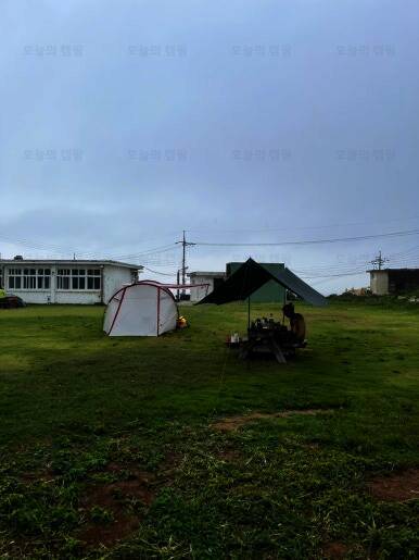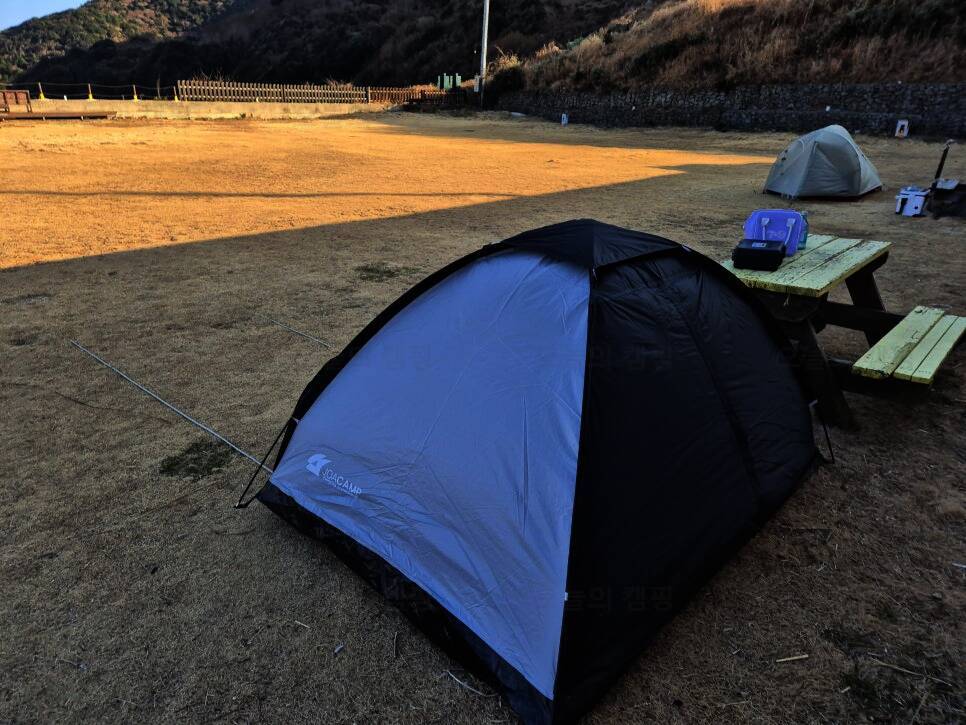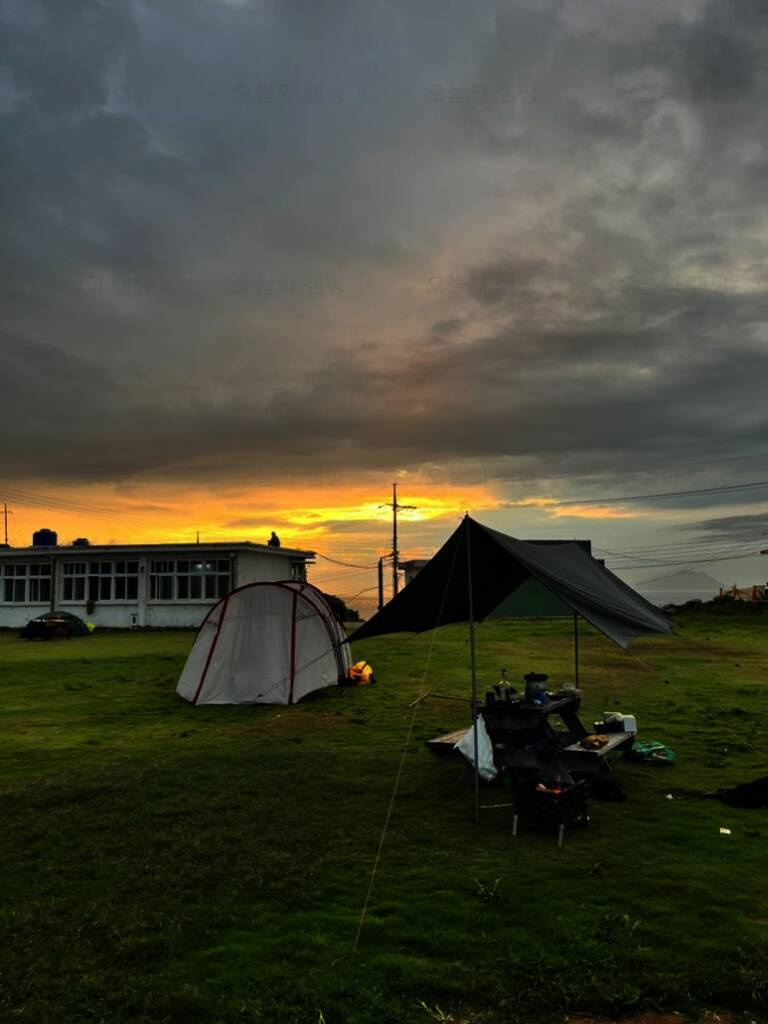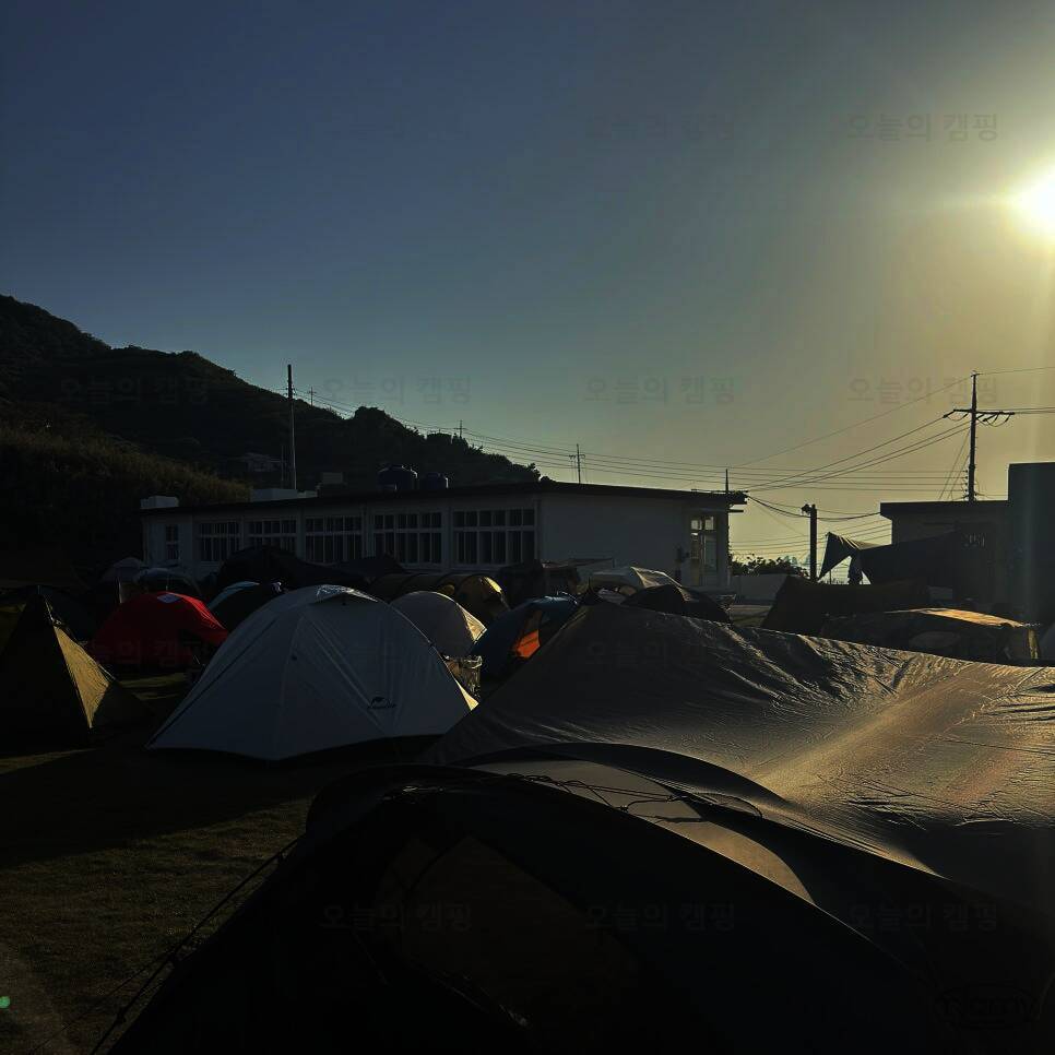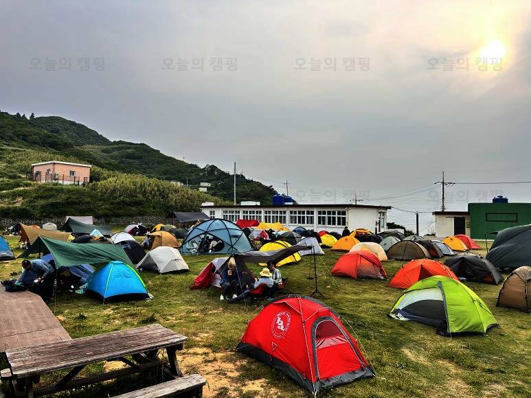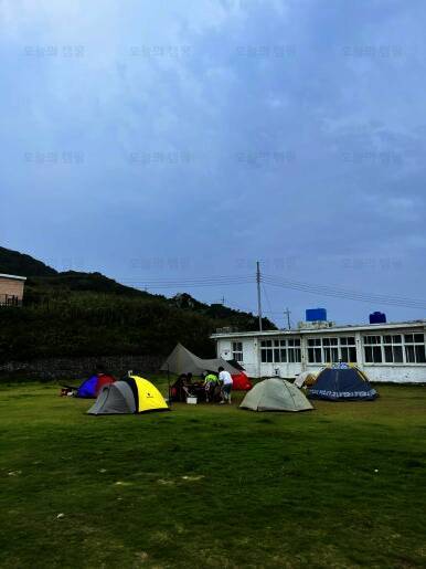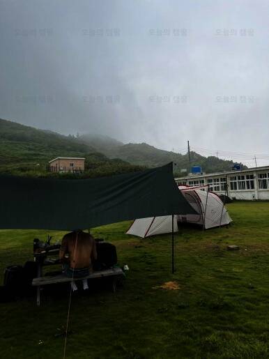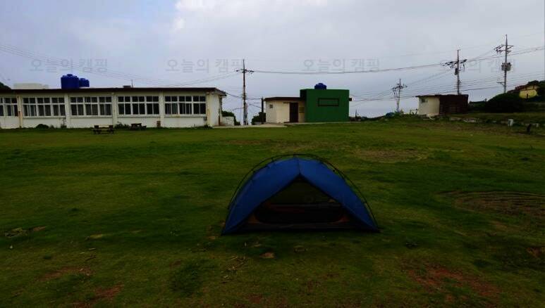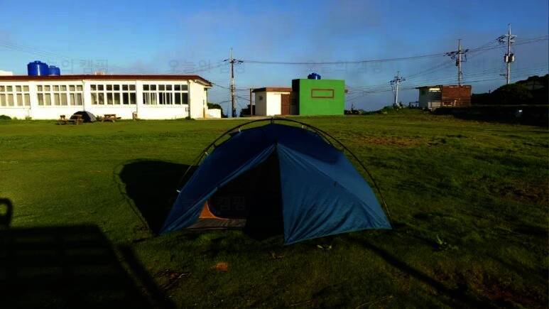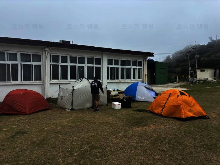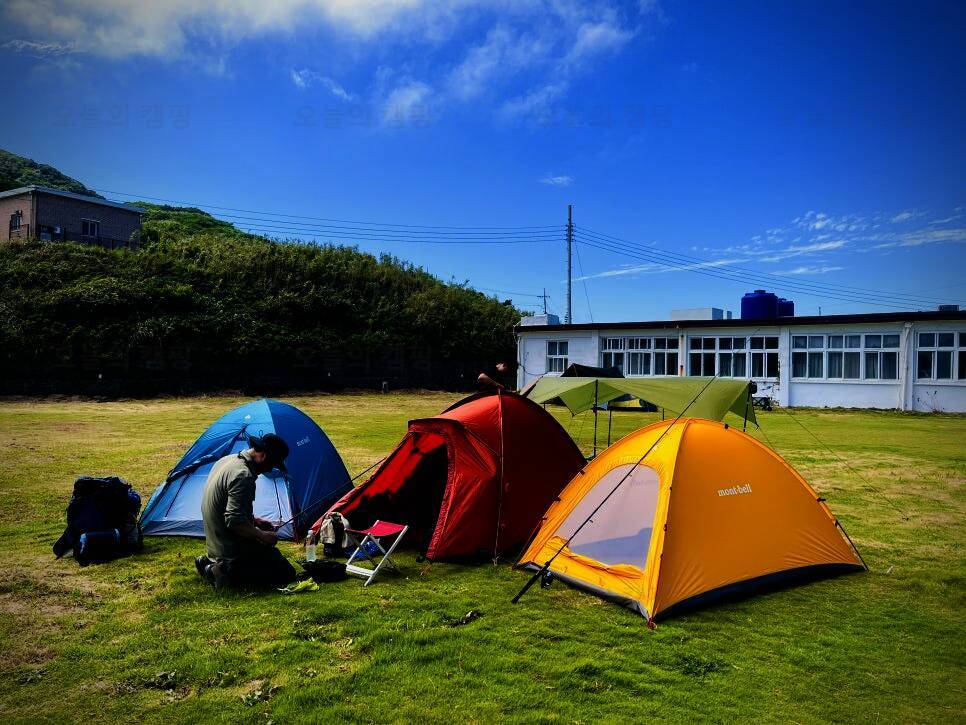 불리는 매물도야영장 이제 텐트치는거야 금방이지! 이렇게 폐교를 등지고 텐트치라고 야영장 사장님께서 추천해주셨어요! 담날 바람이 많이 부는 걸로 예상이 된다고... 울릉도 캠핑갔다가 어마어마한 바람을...