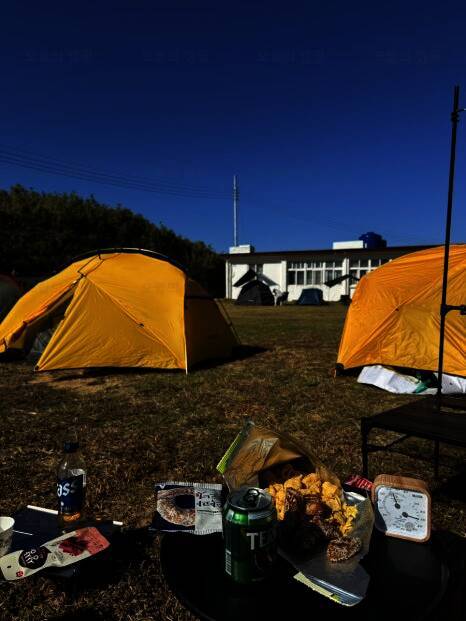 출입금지 ✔️ 매물도 야영장 = 8시부터 매너 타임ㅋㅋㅋ ✔️ 매점 5시까지 운영 (술,물,얼음,라면... 캠핑? new 식구들도 오고 ~ 먹느라~ 웃느라 너무너무 절거웠다 ~ 후딱 먹고 9시?쯤 취침 ㄱㄱ 함 ~ 그러고...