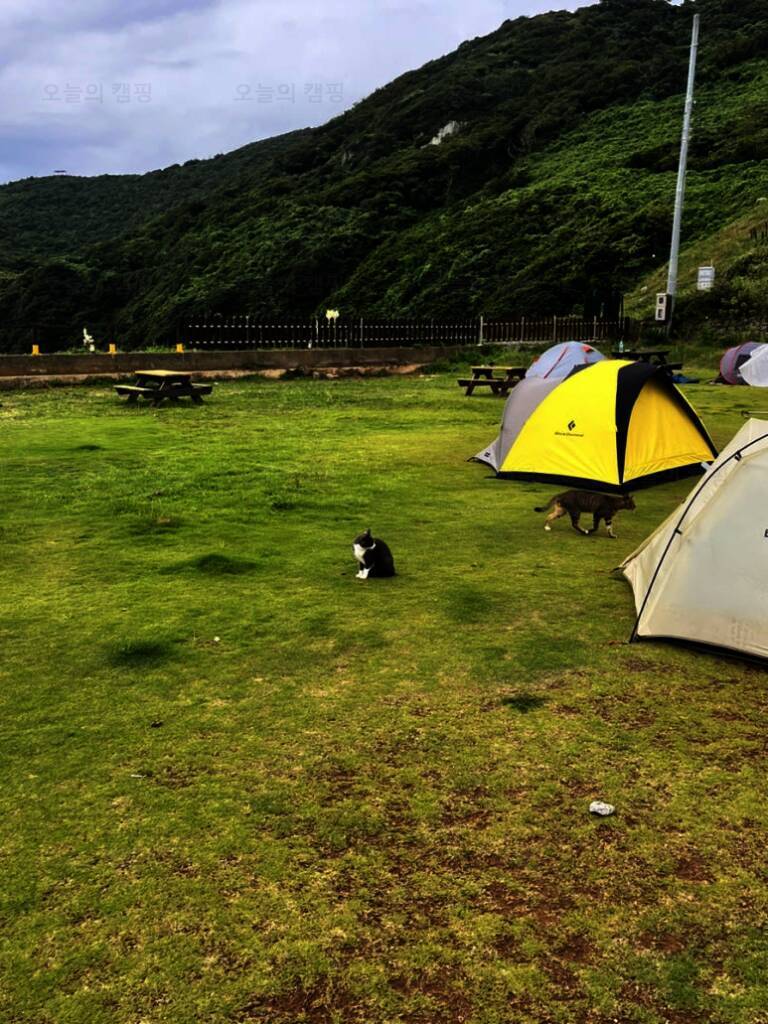 출발지가 통영이신 분들도 매물도 야영장 가시면 매물_당금으로 하시면 됩니다. 당금 선착장에서... 너무 귀엽죠..ㅠ)ㅜ 애견 동반되는 캠핑장이라니... 너무 좋아! 우리 홍초랑 단짝 데리고 또 와야지! 야영장 맨...