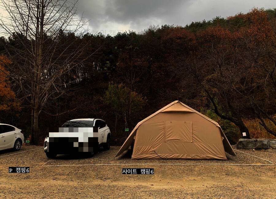 여주캠핑주막 9번사이트 우리가 예약한 9번 사이트는 자리에 짐을 내리고 난 후 지정 주차 자리로 차를 옮겨야 한다. 주차도 생각보다 가까워서 불편하단 생각은 들지 않았다. 출처 여주캠핑주막 카페 우리...