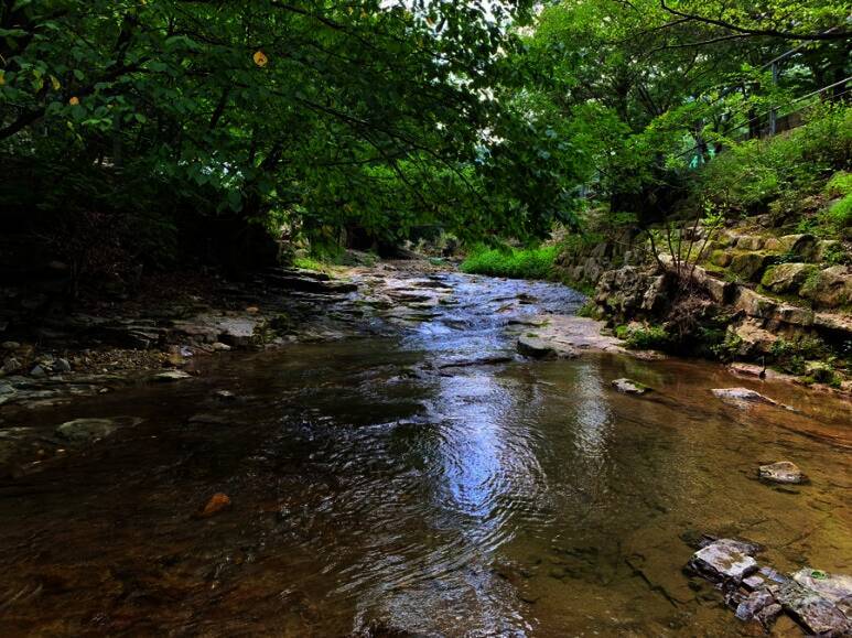울창한 송림과 계곡이 있는 캠핑장