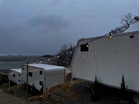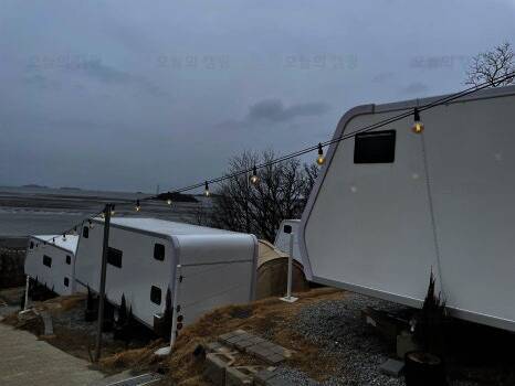 석모도 보문사옆 해변 언덕, 바다 뷰 카라반과 카페