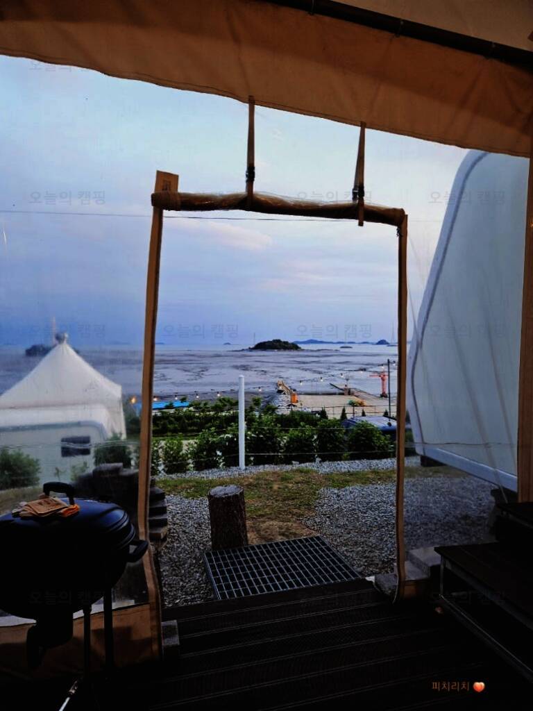 [오우스카라반캠핑장]에서 했어요!! 내 불안한 미래와 앞날이 걱정이니께... 불멍과 바다멍을 좀 해볼까 합니다~~ 김포집에서 1시간 반정도 들어가서 위치해 있어요~ 캠핑 장비가 없는 우리는 글램핑이 최고죠!...