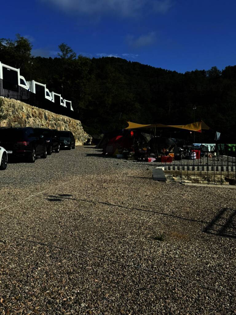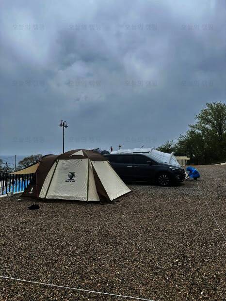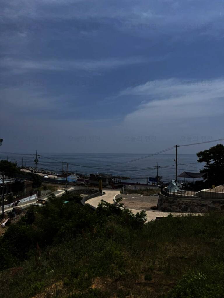영덕 오션뷰 카라반 캠핑장은 언덕위에 위치해 있어서 탁트인 전경이 좋았어요 우리 캠핑사이트 뷰~ 앞쪽 자리를 맡으면 바다뷰가 더 잘 보이는데 저희는 화장실과 개수대가 가까운 구석 뷰를 선택!...