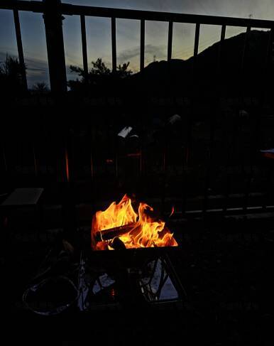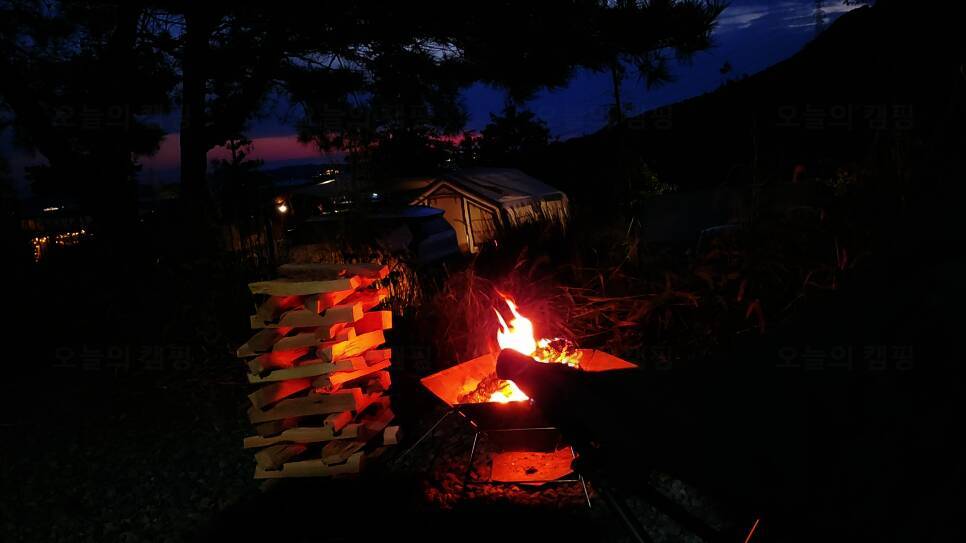 없는 캠핑의 꽃! 불멍~ 요즘 해가 일찍 져서 일지감치부터 불멍을 시작했어요~ 보통 산뷰좋은 캠핑장을 가면 낮에는 탁 트인 경치에 예쁘지만 밤이되면 암흑이 깔려 아무것도 보이지 않는데요, 대천힐링캠핑...