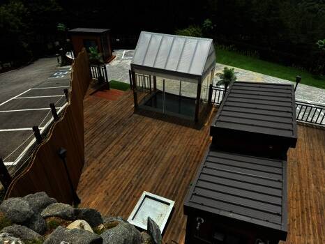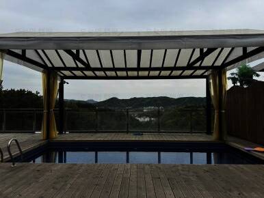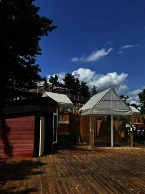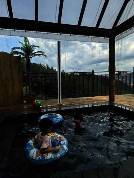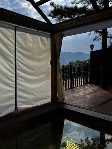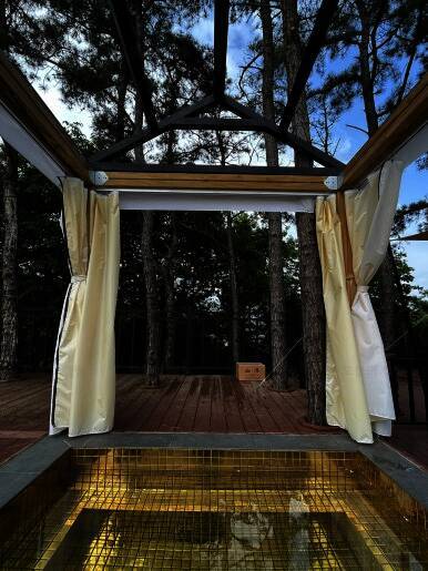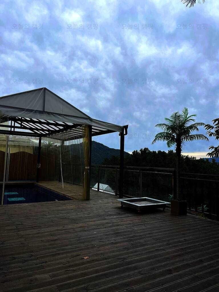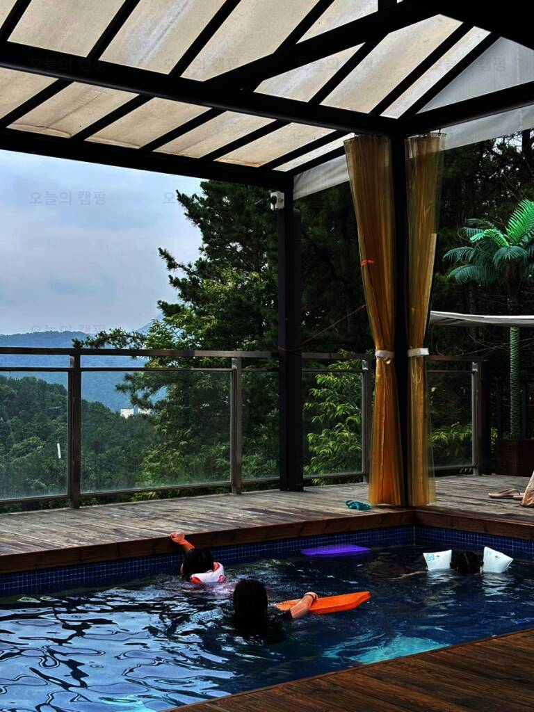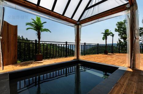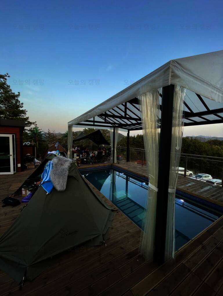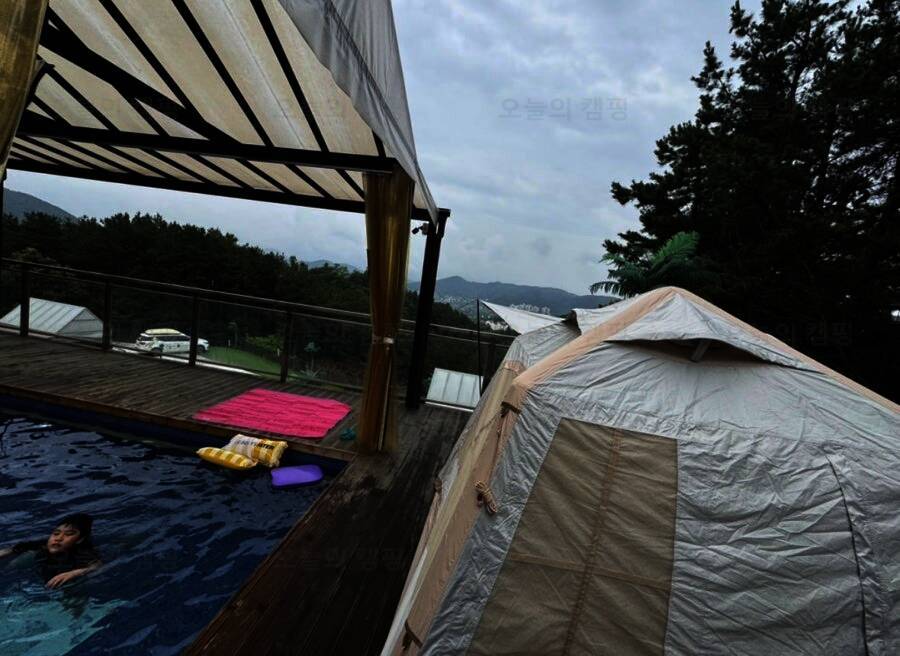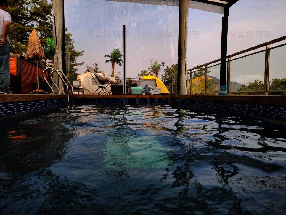 개별 노천탕과 개별 수영장이 있는 캠핑장