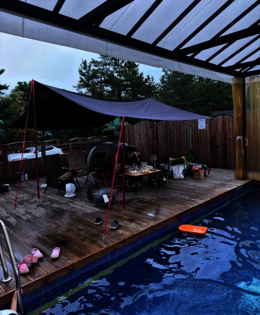 바로, 양평 골든쌔들 캠핑장인데요, 양평 골든쌔들캠핑장 주소 : 경기 양평군 용문면 경강로 2960... 여기는 수영장 캠핑존입니다. 노천탕에 비해 수영장 크기가 넓고 단체 위주로 운영을 하고 있습니다 사이트...