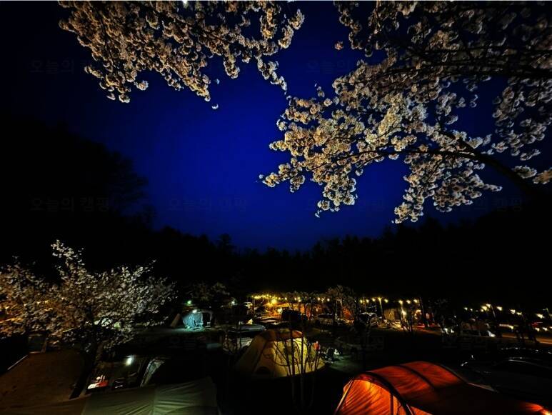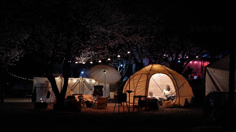플라워 제품으로 벚꽃 캠핑 조명 연출 후기 인천대공원 캠핑장...