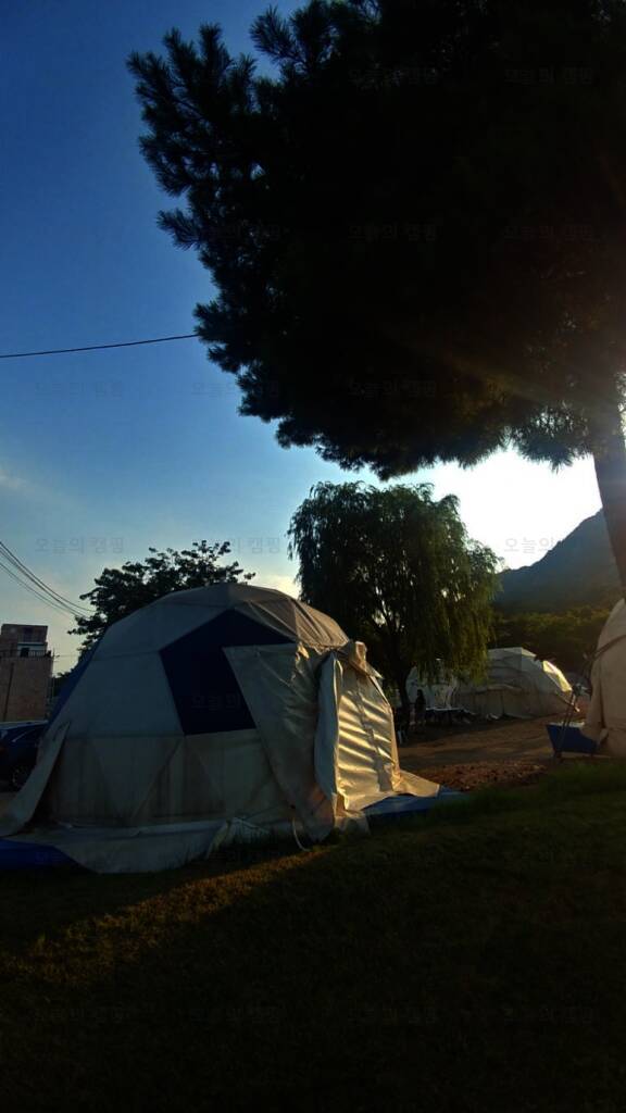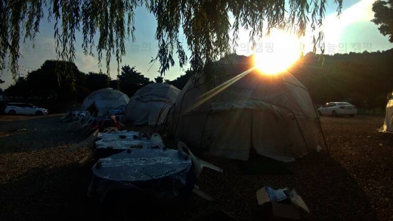 용봉산글램핑 새벽 녘 전경입니다~~ 캠핑의 진정한 맛은 가을이 아닌가 해요 잔디광장 파라솔 밑에 앉아 멋진 음악과 차 한잔을 마주하면 이 세상 무엇이 부러울까요~~
