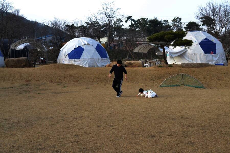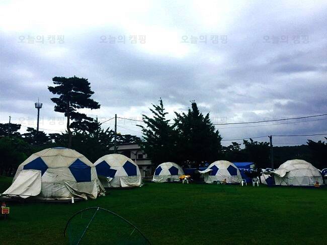자동차극장을 지나쳐서 올라가시면 용봉산 글램핑장이 보입니다. 캠핑장에 들어서자... 축구공 형태로 만들어진 돔글램핑 텐트들과 아이들이 뛰어노는 넓은 잔디가 눈에 들어옵니다. 요즘은 여건상 짧은...