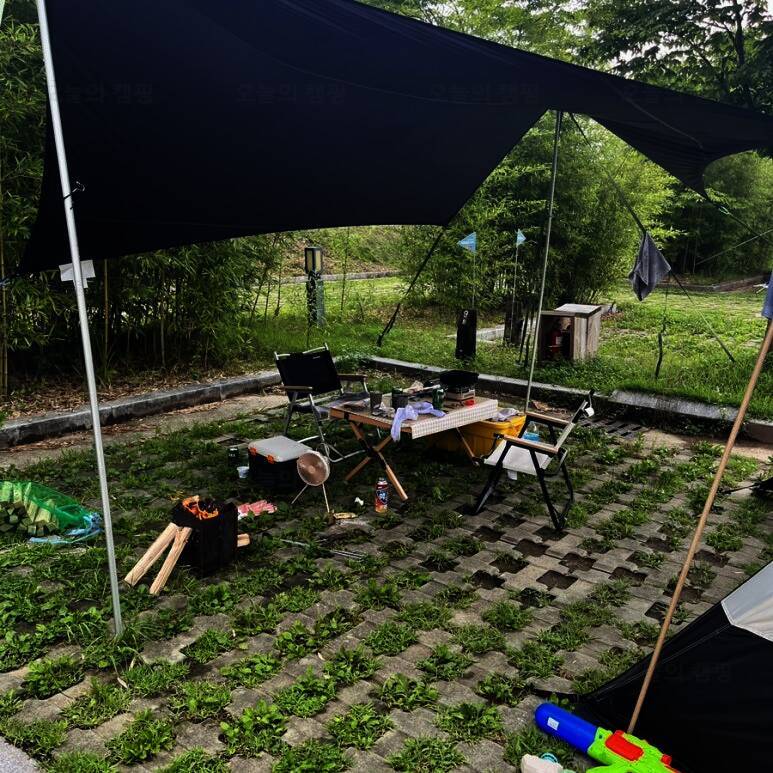 칭구들✌️ 다행히 담양금성산성오토캠핑장에서는 캠핑용품을 매점에서 대여할 수 있는데, 캠핑장 사장님께서 비슷한 길이의 폴대를 빌려주셔서 어찌저찌 텐트 설치 성공하구 바로 양갈비에 연맥 달려!!!!!!!...