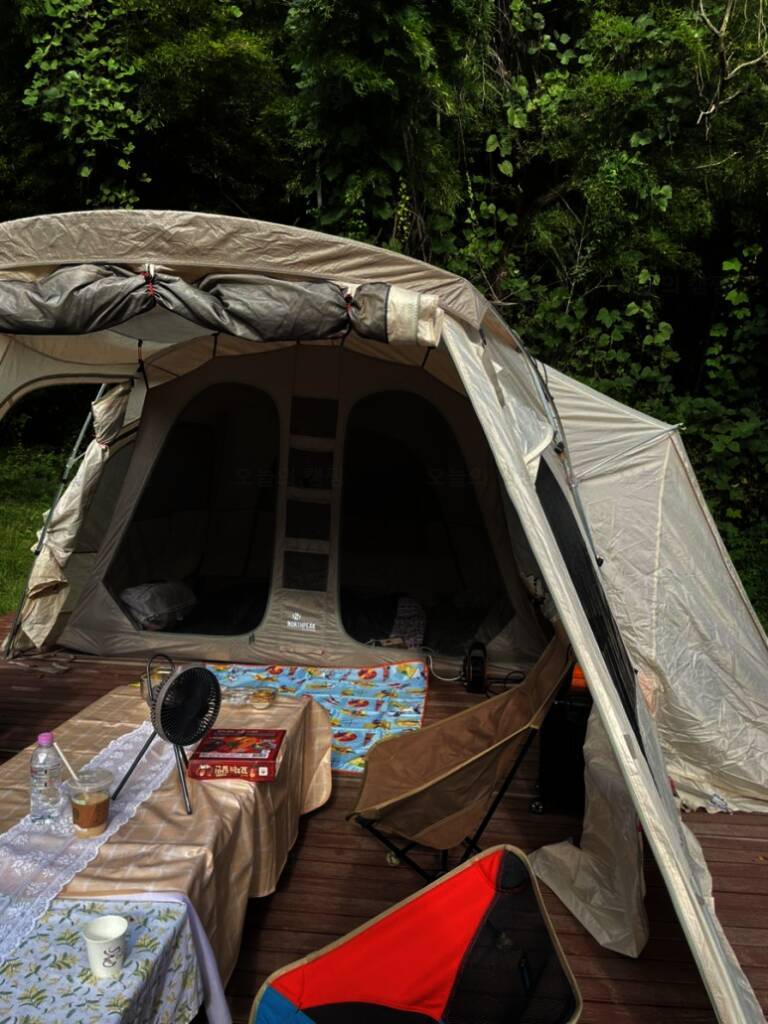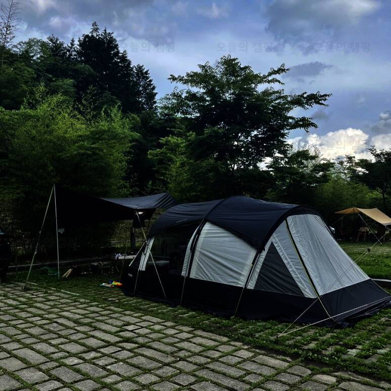 항상 와보고 싶었지만 날씨랑 예약이 힘들어 못오다가 우연히 취소자리 잡아 급 오게 된 #담양금성산성오토캠핑장 #아들둘과캠핑하기 #엄마캠핑 F3데크 자리었어요 아들둘과 엄마 이렇게 원터치 텐트 간단히...
