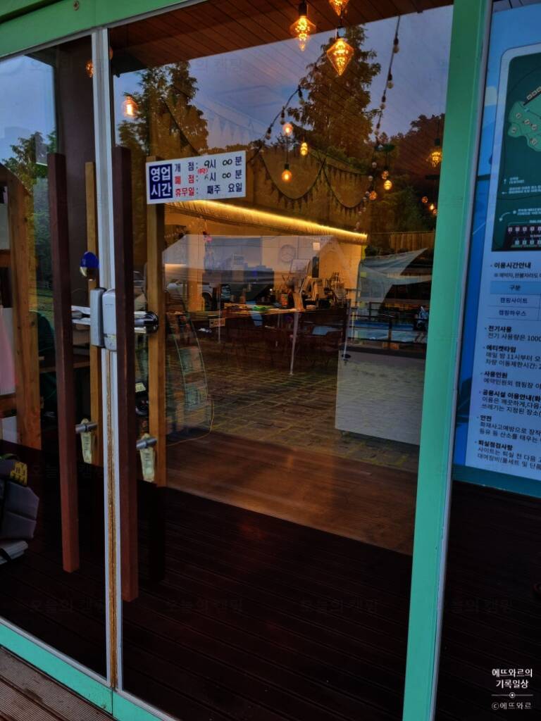 담양 금성산성 오토캠핑장 이용안내 확인~~~~ 영업시간은 9시부터 6시까지다. 관리동 옆라인에 오락기계와 수영할때 필요한 구명조끼, 화롯대등 필요한 물품들이 있었다. 우리 텐트 옆에 캠핑카가 와서 자리를...
