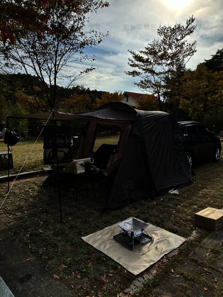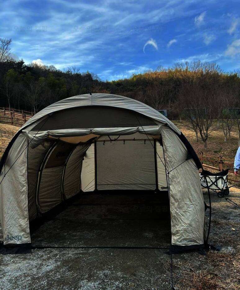 뭔가 겨울 느낌쓰 담양금성산성오토캠핑장 B-9 도착해서 먼저 반려견 추가 금액 5000원 계산하고 우리 자리로 가서 얼른 텐트 치자!! 비 오기 전에...라고 했지만 텐트 치고 있으니 비가 내림... 우리 캠핑 갈...